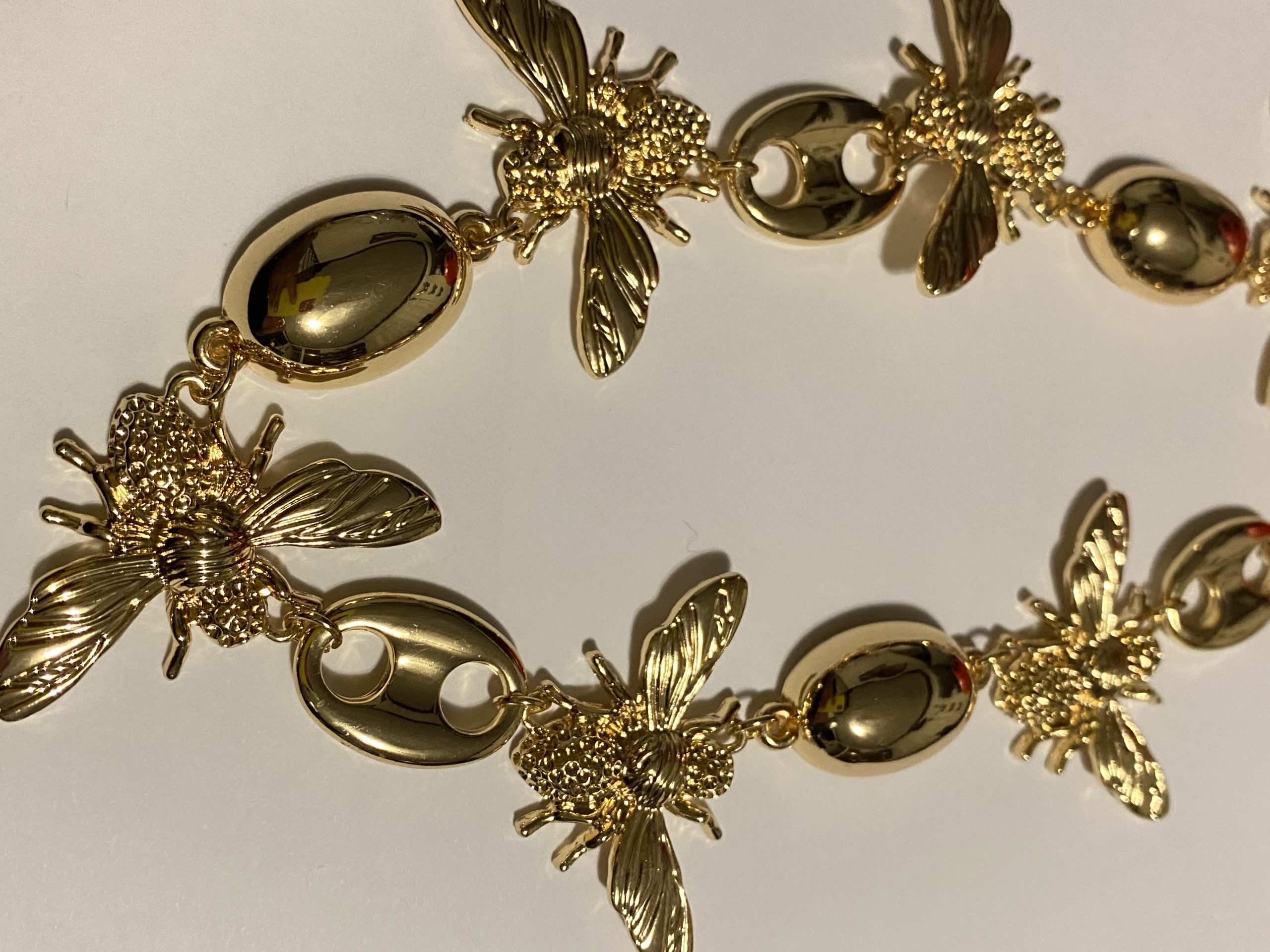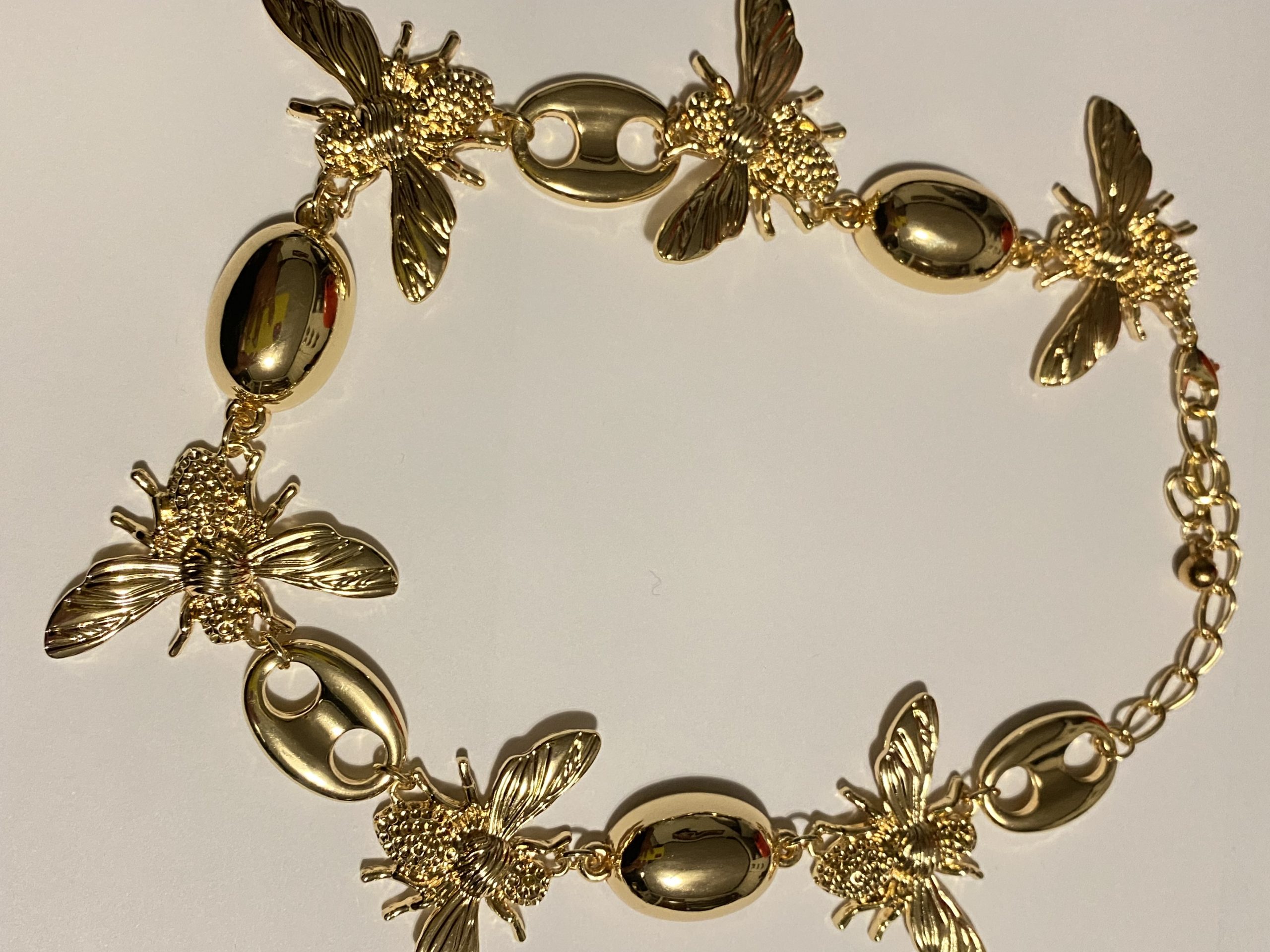 Collar de bisutería, color dorado con insectos en forma de avispa ajustable a 48cm.