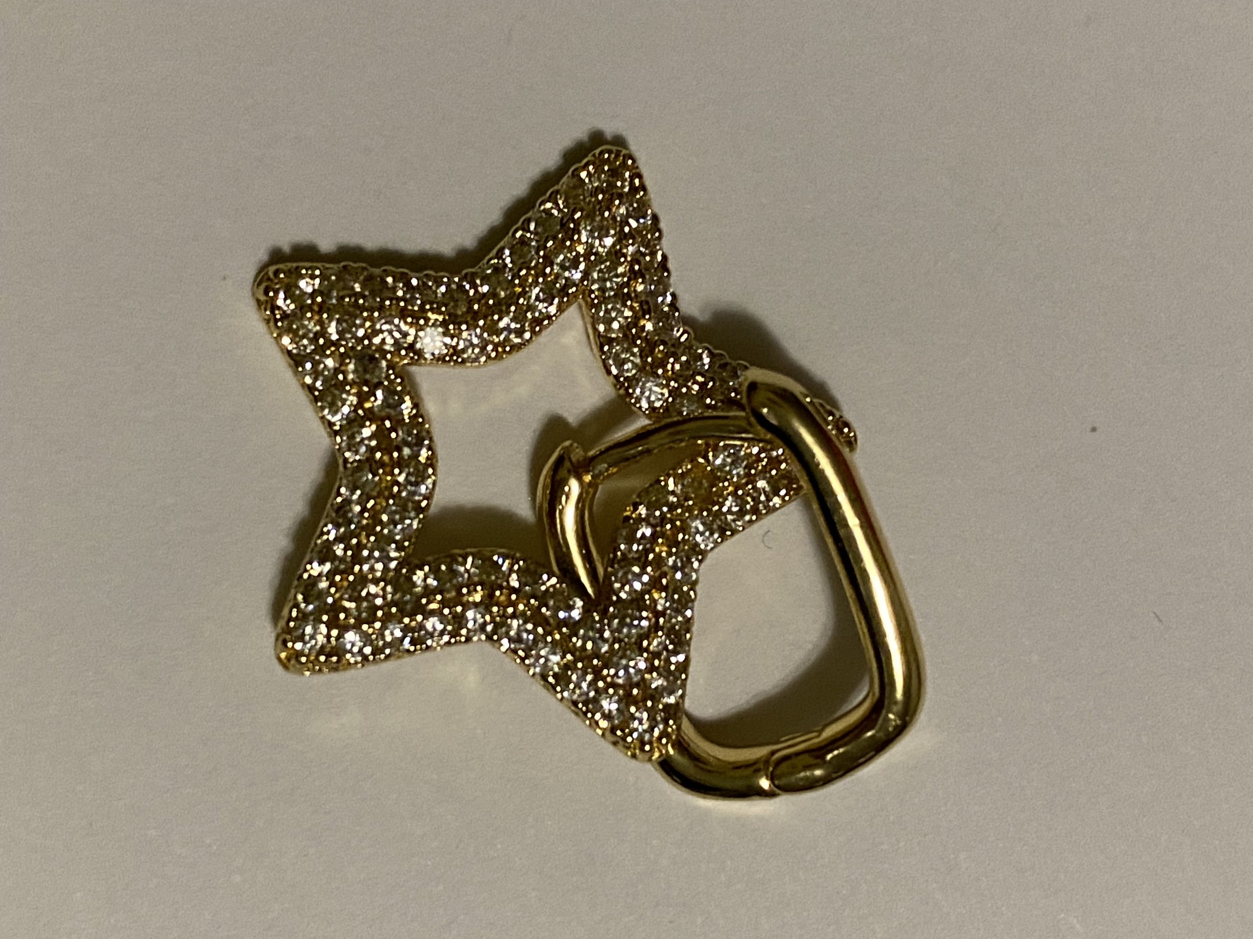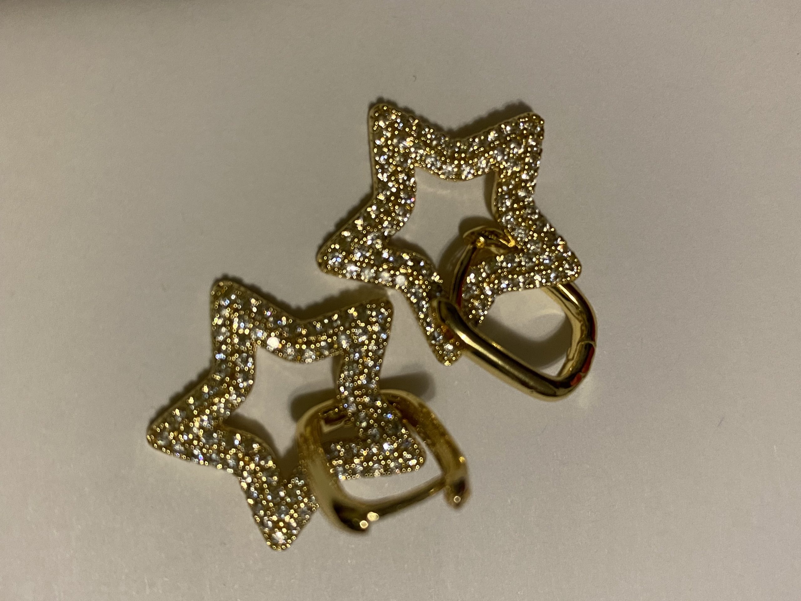 Arracada de bisutería, en forma de Estrella color dorado, Con Zirconias .